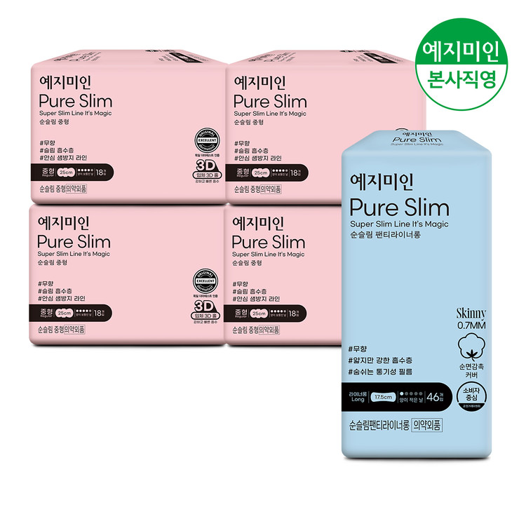 예지미인 순슬림 생리대 중형 18Px4팩+롱라이너 46Px1팩
