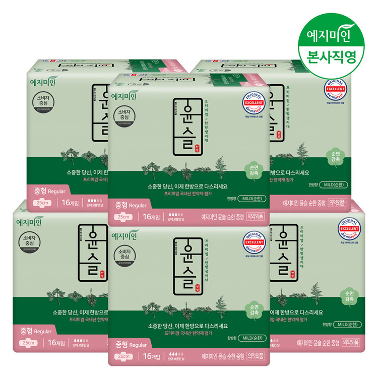 [유통기한임박특가]예지미인 윤슬 한방 향 생리대 중형 16Px6팩