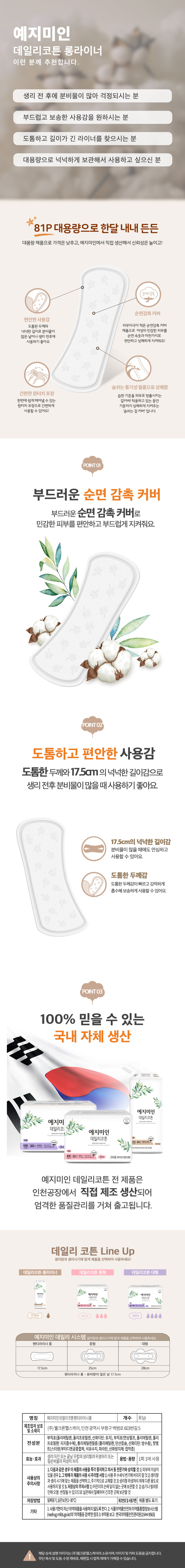 [블프초특가🖤] 예지미인 데일리코튼 롱 팬티라이너 81P+날개형 롱 팬티라이너 63P