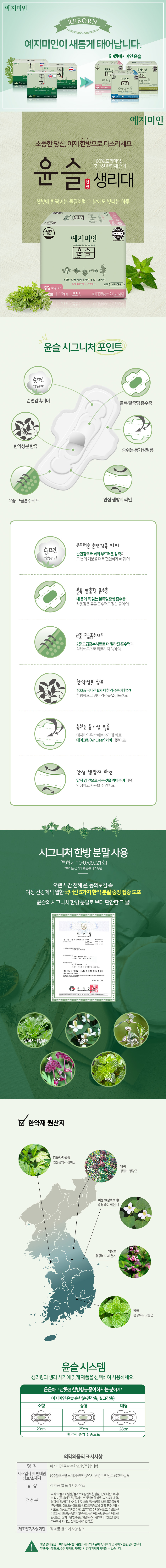[특가] 예지미인 윤슬 한방 생리대 소형 16Px6팩