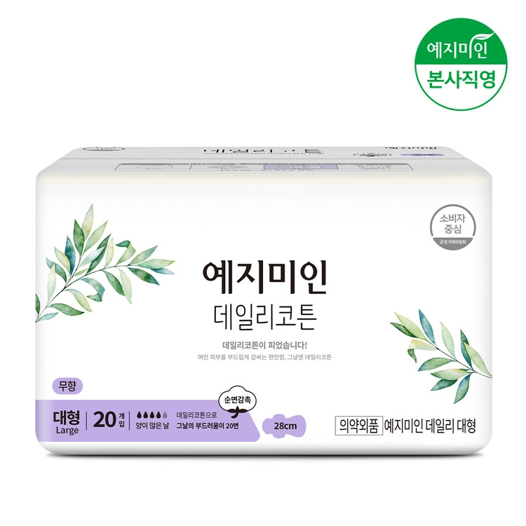 예지미인 데일리코튼 순면 감촉 생리대 대형 20P